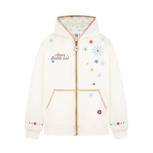 Floral Embroidery Hooded Sweatshirt Unisex Loose Casual Outerwear